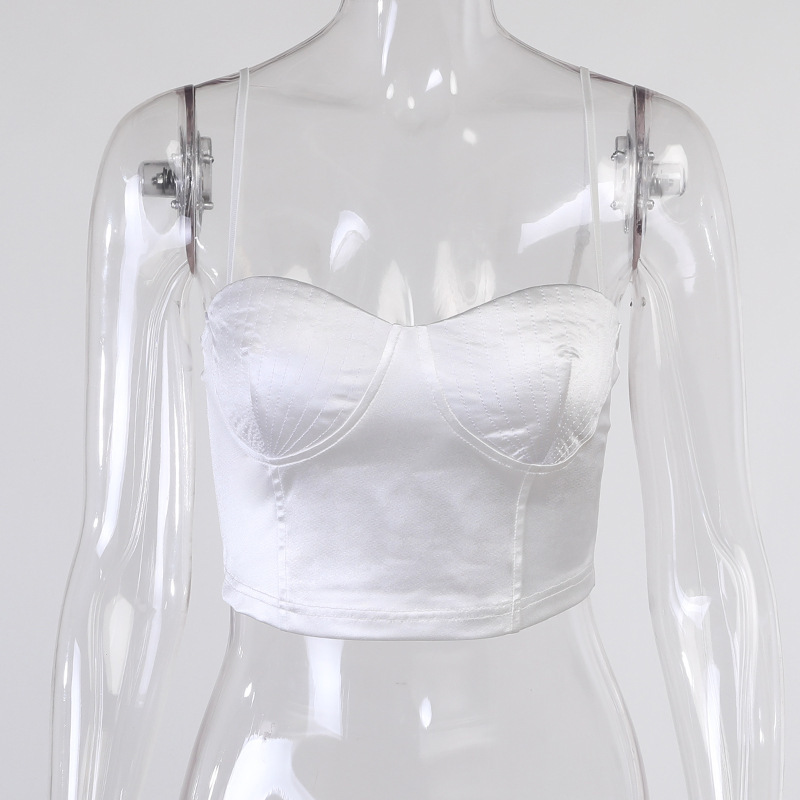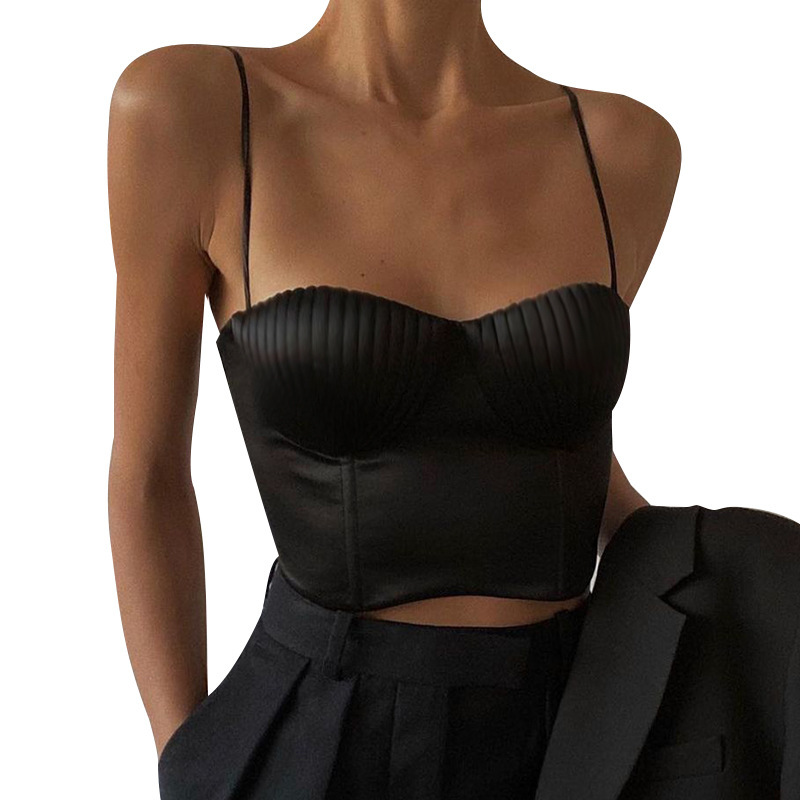 27515P European And American Cross-border Spring and Summer New Shell Fold Tight-fitting Breast Sexy Solid Color Small Sling Top Women