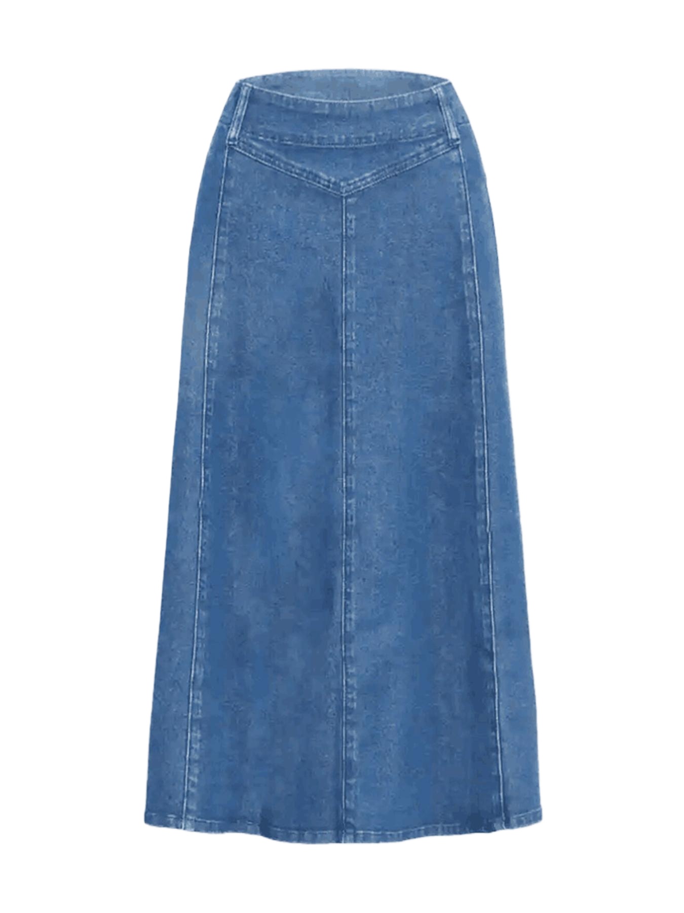 2025 Spring New Women's High Waist Loose A-line Cowboy Skirt, Medium Length Elastic Casual Solid Color Skirt, Elegant For Office And Daily Wear, Fashionable Style Smooth, Cowboy Fabric Washable